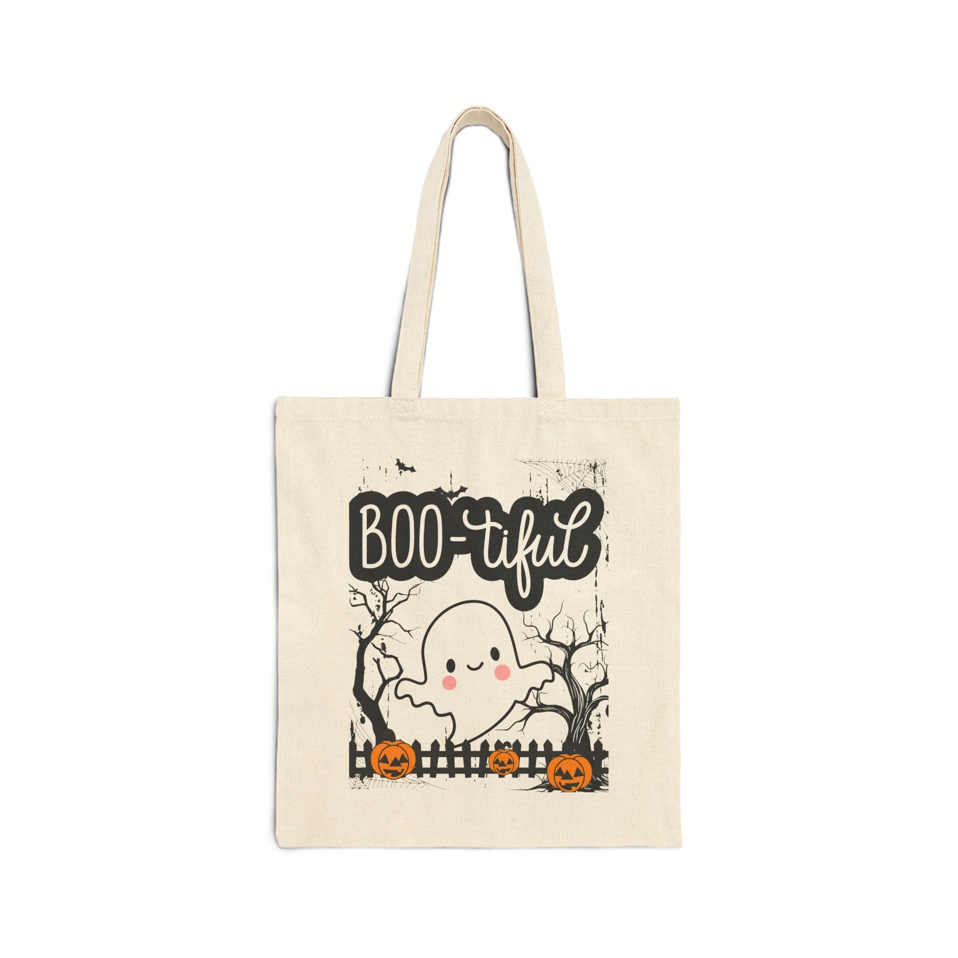 Boo-tiful Ghost Halloween Canvas Tote Bag, Fall Gift, Eco-Friendly Halloween Tote, Trick or Treat Bag, Seasonal Shopping Bag