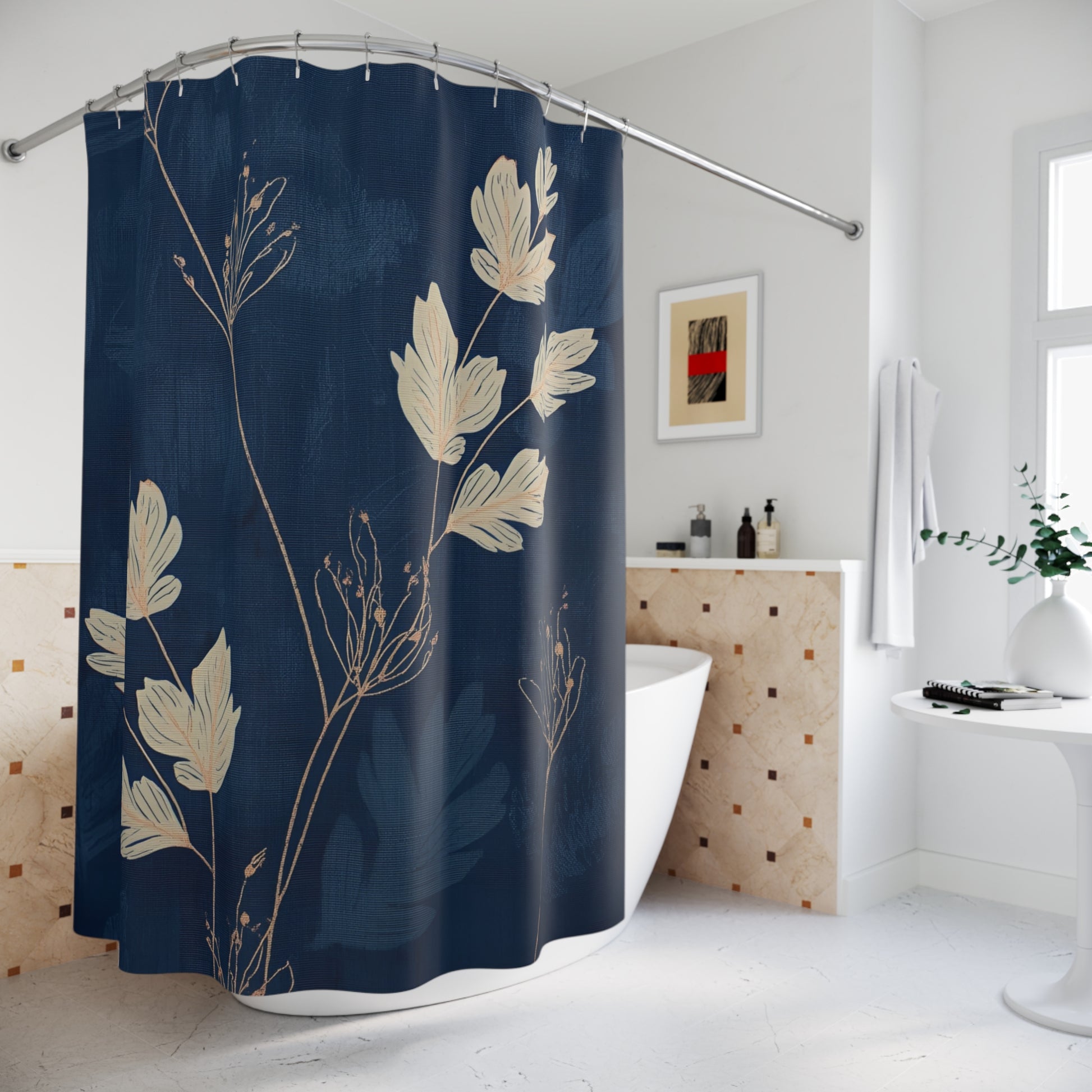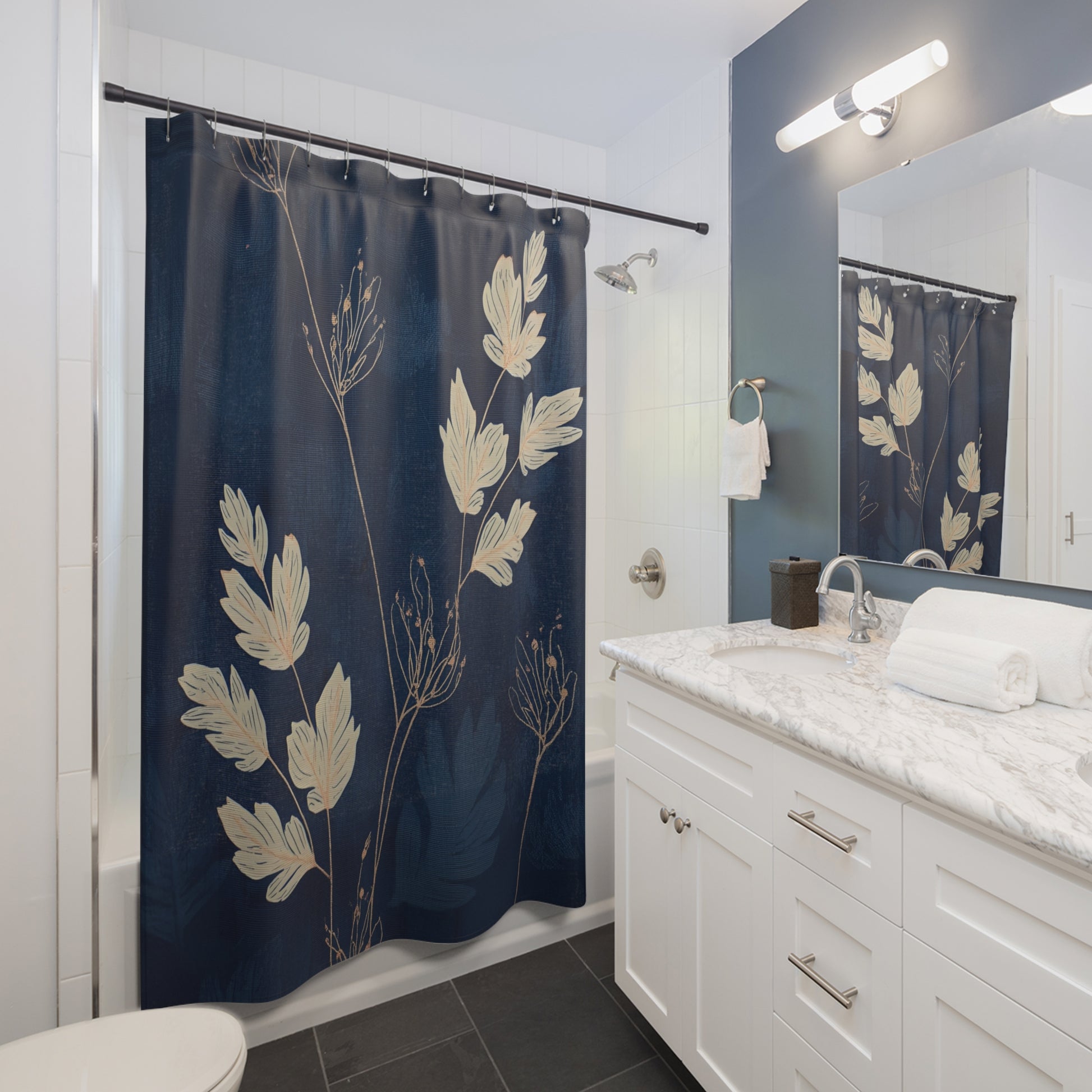 Transform your bathroom into a serene retreat with these beautiful shower curtains. The soothing design features delicate botanical elements against a deep blue backdrop, creating a calm and tranquil vibe. Perfect for unwinding after a long day or starting your morning with a touch of elegance. Ideal for adults who appreciate sophisticated aesthetics and want to enhance their home decor. This product is great for housewarming gifts, seasonal decor changes, or as a thoughtful present for special occasions like birthdays and holidays. Elevate your space effortlessly!