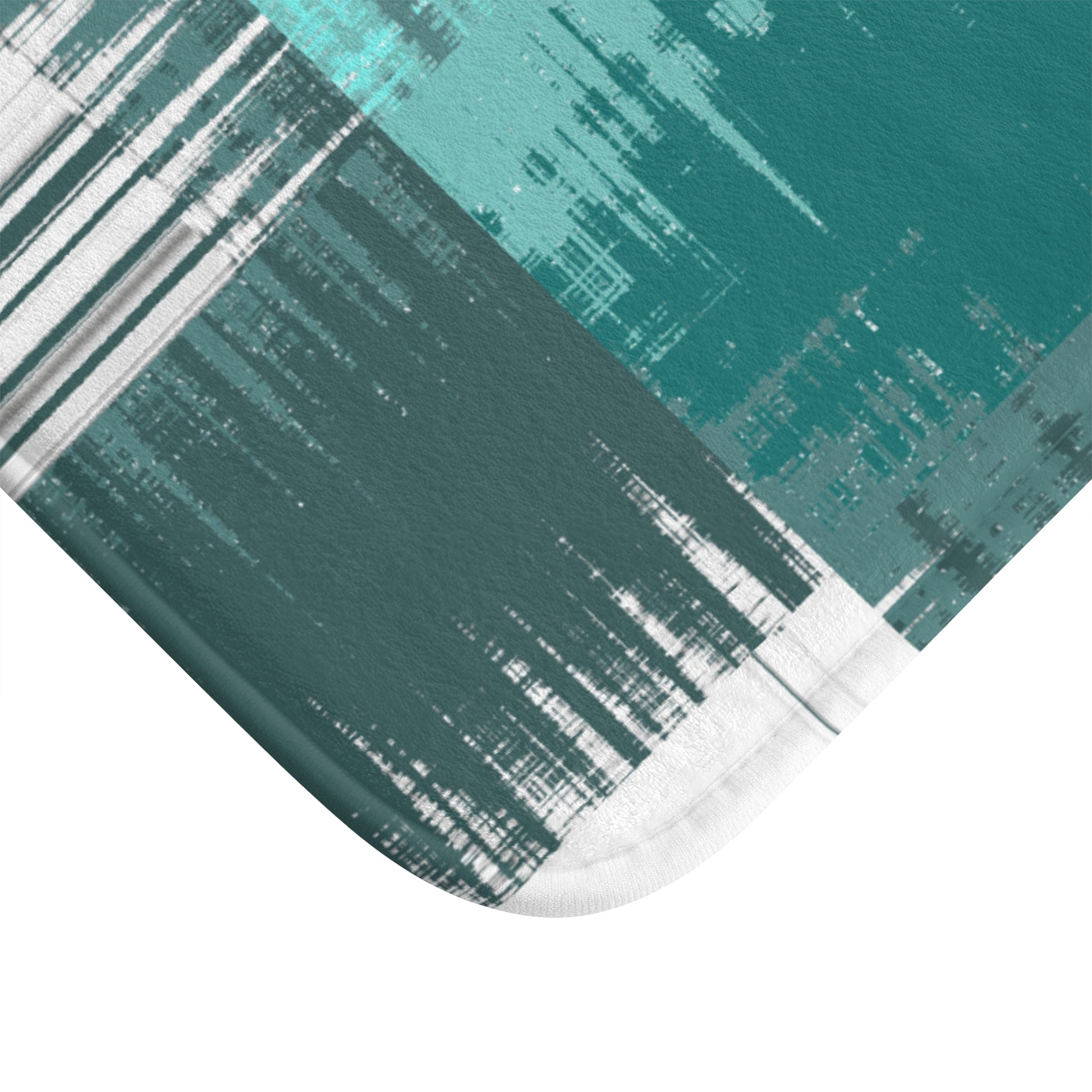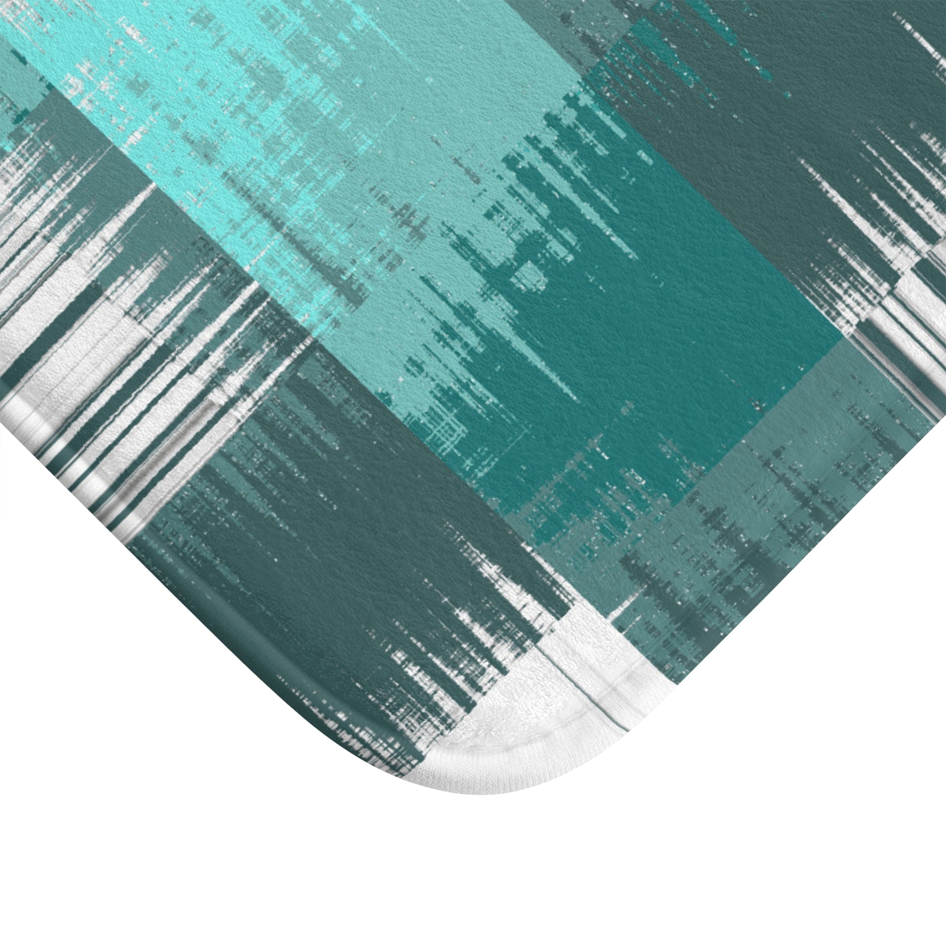 Modern Geometric Bath Mat, Abstract Aqua and Gray Bath Rug, Stylish Bathroom Accessory, Home Decor, Gift Idea