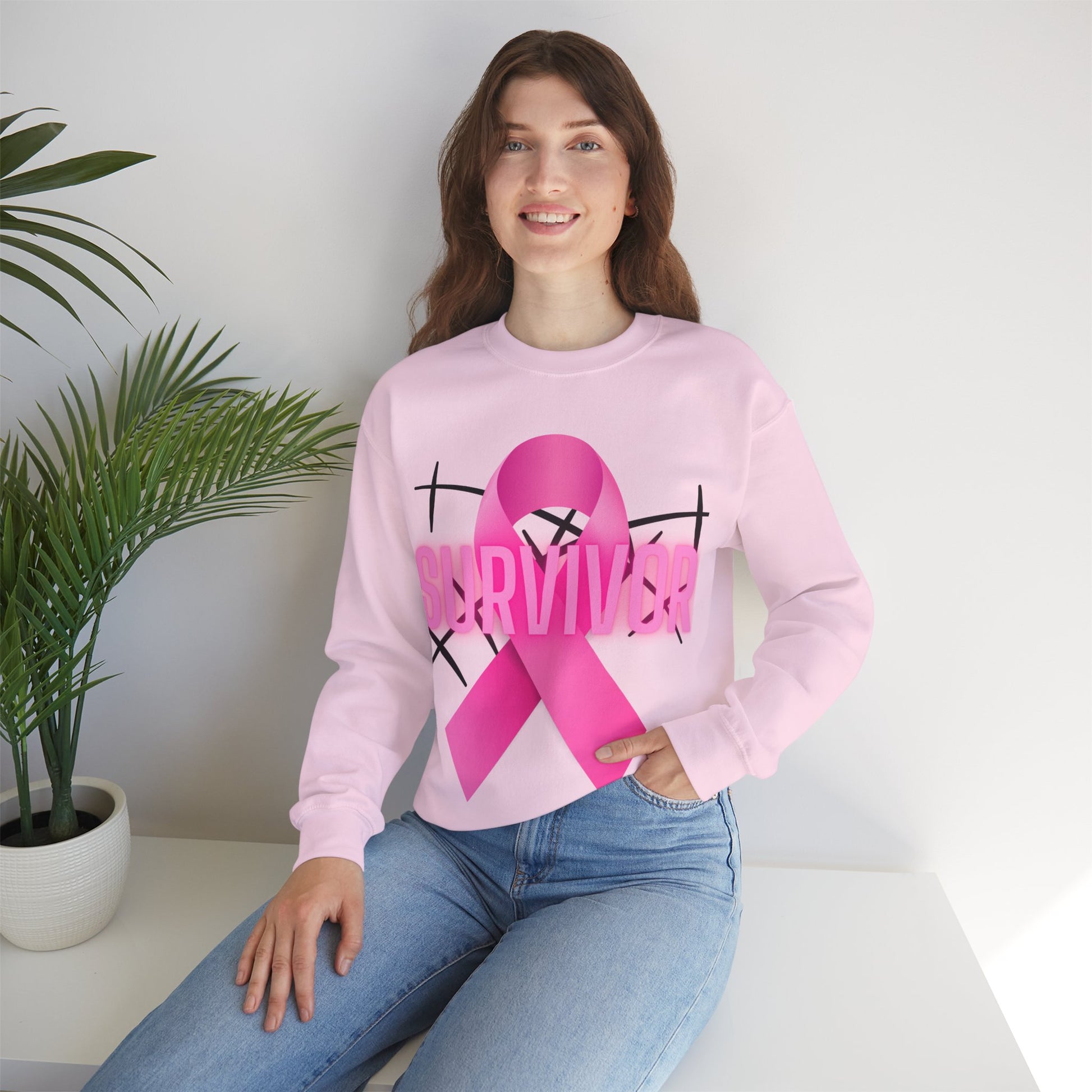 Pink Ribbon Survivor Sweatshirt, Unisex Crewneck, Awareness Apparel, Cancer Support Gift, Breast Cancer Awareness Sweatshirt