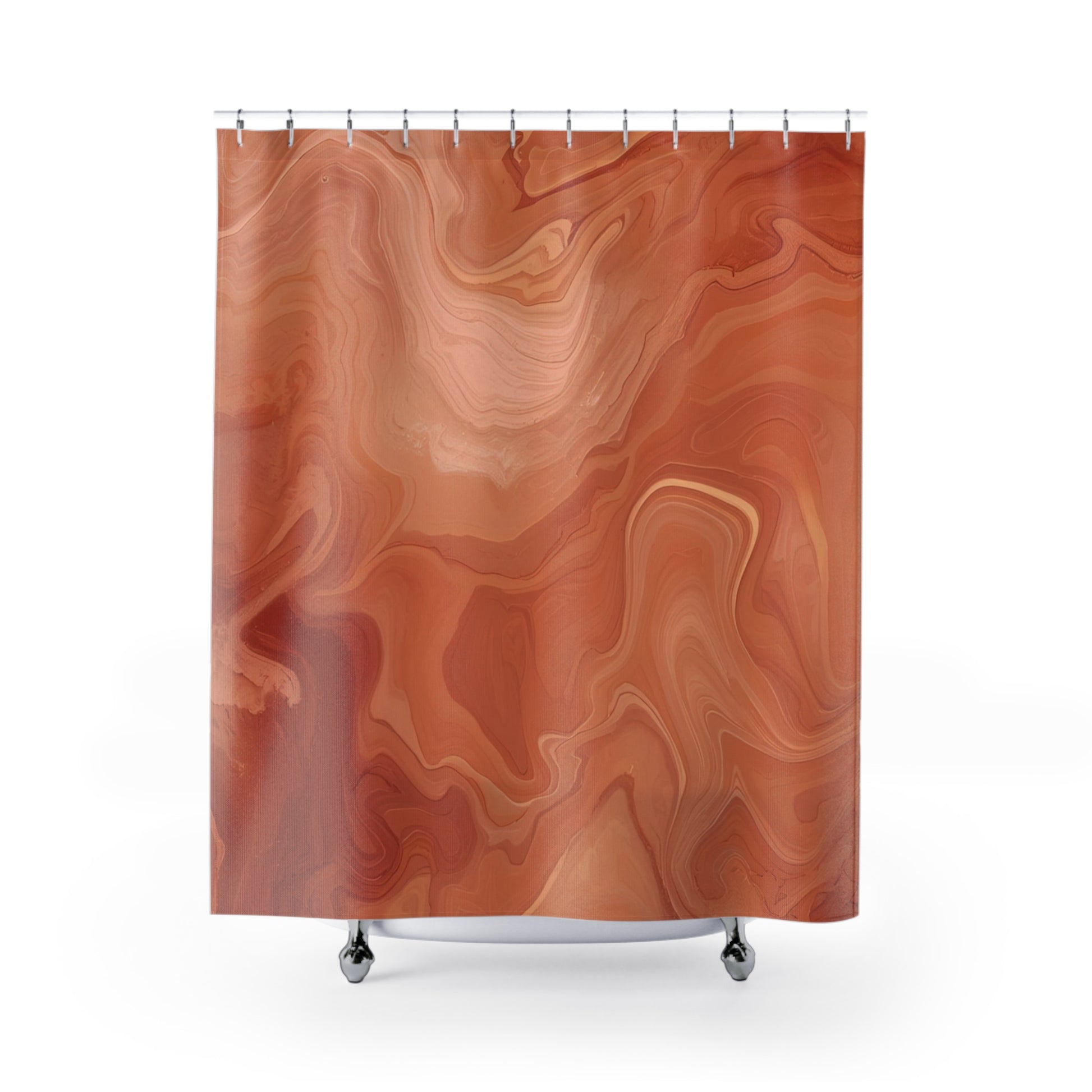 This shower curtain is here to add an original touch to any bathroom with your designs. Made with highly durable polyester, this curtain stays like new for a long time to come and is a perfect printing area for your art. Please note: While polyester offers adequate protection against water, a liner might be necessary for full waterproofness.